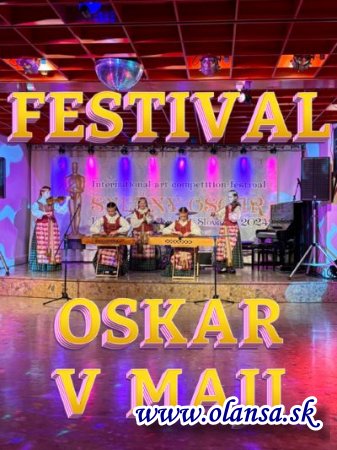 В рамках фестиваля будут проводиться конкурсы по номинациям, гала-концерт, награждение лауреатов и участников конкурса (победителям вручается премия "Оскар в мае"), для всех ежедневное плавание в крытом бассейне в отеле и насыщенная экскурсионная программа. Участникам фестиваля предлагается широкая шкала єкскурсий: в замки, пещеры, Высокие Татры, аквапарки, сплав на плотах и многое многое другое. Программы экскурсий и актуальные цены будут высылаться под индивидуальный запрос.